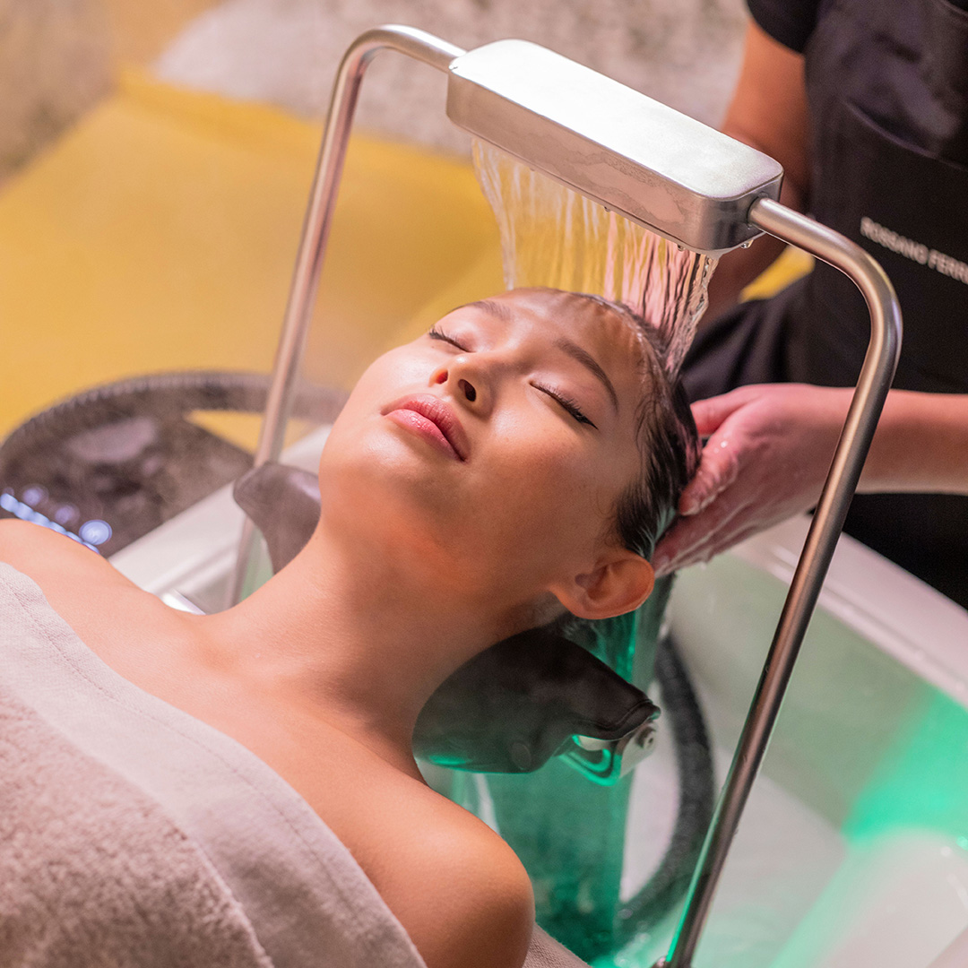 -Wassen en haarbehandeling, die kan worden gecombineerd met de Shirodara-behandeling en het stoomsysteem om klanten een complete en revitaliserende ontspanningservaring te bieden.