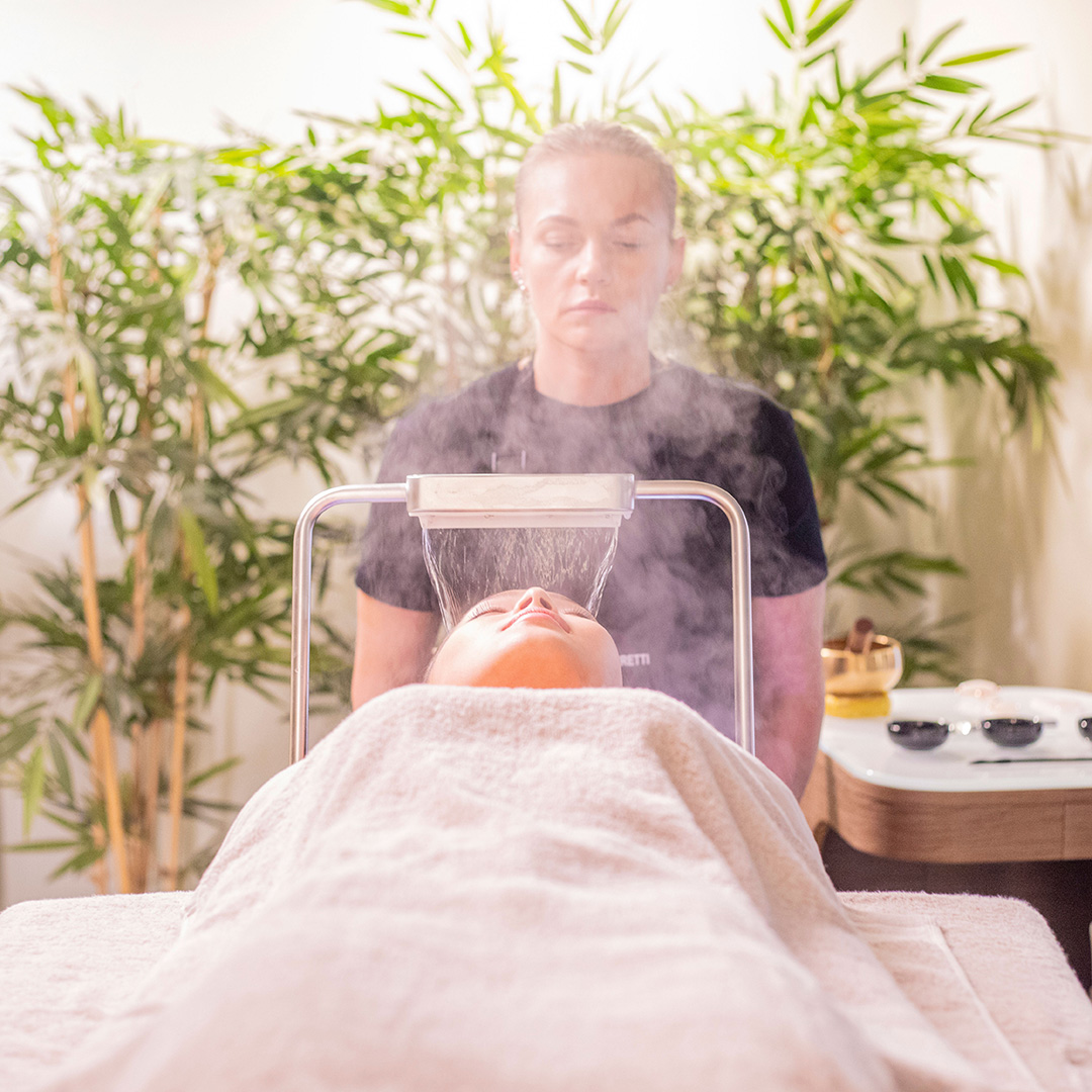 De stoom reinigt de huid diep, verzorgt de haarschubben en bevordert gezonder en levendiger haar.